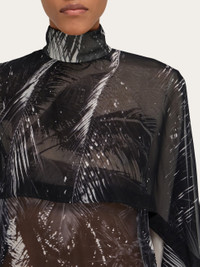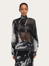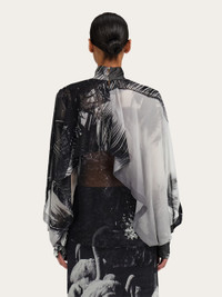 The unexpected, uplifting feeling of receiving a sunny postcard during winter inspired this season’s Trinidad motif. Printed on pure silk georgette, the soft, billowing fabric is cut with a high neckline, and overlapping layers to create this glamourous shirt with a high fashion feel. Button up teardrop opening at the back. - Composition: 100% silk - Made in ITALY - Product code: 13H792 788609