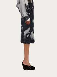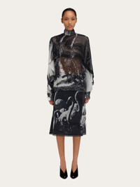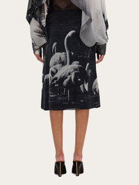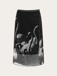 Sensual and artistic, a thin veil of silk georgette is the canvas for this season’s Flamingo print. Cut just below the knee, the straight silhouette is built like a petticoat, with an exotic, evocative pattern that evokes the unexpected pleasure of receiving sunny postcards in winter. - Composition: 100% silk - Made in ITALY - Product code: 13H793 788610