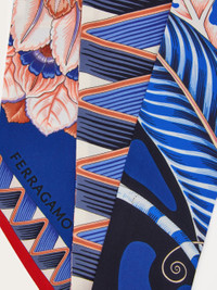 A most versatile accessory, the silk bandeau can be worn in your hair, around your neck, as a belt, or used to decorate your bag; the options are endless! This iteration is decorated with the Giada motif. - length 55.1 IN width 2.7 IN - Composition: 100% silk - Made in ITALY - Product code: 321134 785363