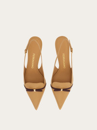 With a pointed tip and slim contrasting micro bow, this new Ferragamo slingback means business. Supple and refined, the kid leather upper has a loafer-like cut with double stitching, while the slim covered heel stands at a comfortable mid height. - Composition: kid leather - Made in ITALY - Product code: 01K799 790584