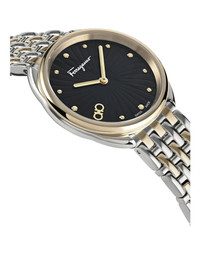 34.00mm Two Tone Case | Two Tone Bracelet | Black Guilloche Dial | 5 ATM | Deployant Buckle | 2 year limited warranty + 2 | Swiss Made 2 Hand Quartz Movement COMPOSITION 100% Stainless Steel MEASUREMENTS Case: 3.4 Product code: 48347691AP