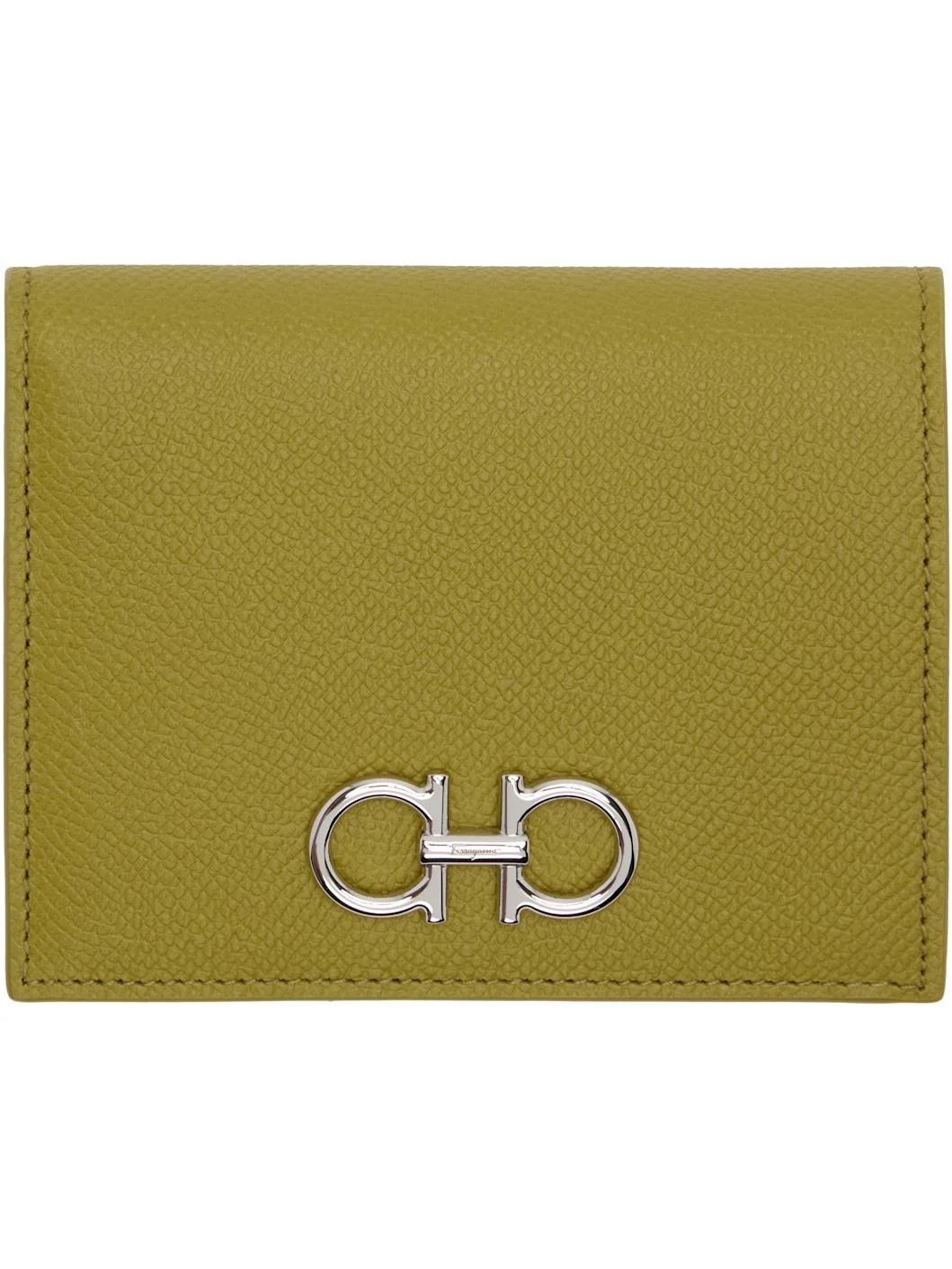 Hammered calfskin bifold wallet. · Logo hardware at face · Press-stud closure · Four card slots and coin compartment at interior · One note slot and patch pocket · Calfskin interior · Canvas lining · H4.5" x W3.5" x D1" Supplier color: Lemongrass Calfskin. Made in Italy 252270F040000