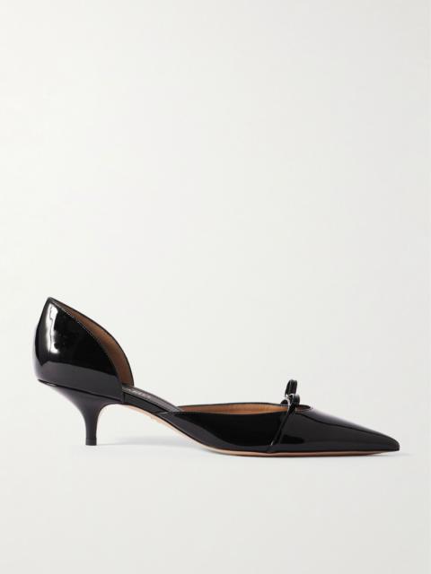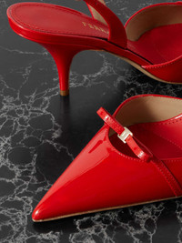 EDITORS'NOTES Ferragamo’s ‘Gylla’ pumps are adorned with sweet bows at the pointed toes. They’re made glossy patent-leather in a vibrant red and set on 70mm heels. Wear yours with everything from jeans to dresses. SIZE & FIT - Fits true to size, take your normal size - US sizing DETAILS & CARE - Heel measures approximately 70mm/ 3 inches - Red patent-leather - Buckle-fastening ankle strap