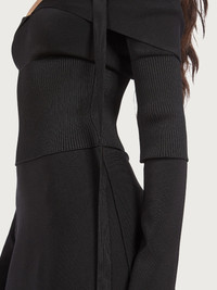 Sensuality with a touch of grit: this Ferragamo knit dress is made using yarns blended with 80% responsibly sourced viscose. The wide neckline is complemented by a decorative strap, fastened by a golden Gancio buckle. The long sleeves have a turn up cuff, while ribbed inserts on the elbows and at the bust at a contemporary feel with a touch of grit. Model measurements: Height 5' 11 "/180 cm, Bust 30½"/78 cm, Waist 23½"/60 cm, Hips 34½"/88 cm Worn size: XS - Composition: 80% viscose, 19% polyamide, 1% polyuretanica - Made In ITALY