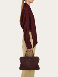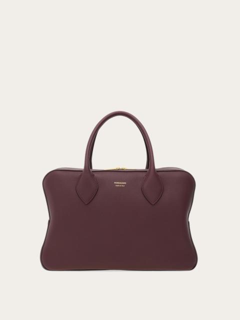 Made of calfskin with a natural, grainy texture, this new Ferragamo take on the tote bag is relaxed style with a contemporary edge. This roomy top handle has three top zips that open to two lined compartments, for perfect organization of personal effects. The mid-length covered top handle and adjustable shoulder strap offer a variety of styling options. - height 8.6 IN length 13.3 IN width 5.9 IN - Composition: calfskin - Made in ITALY - Product code: 219872 779320