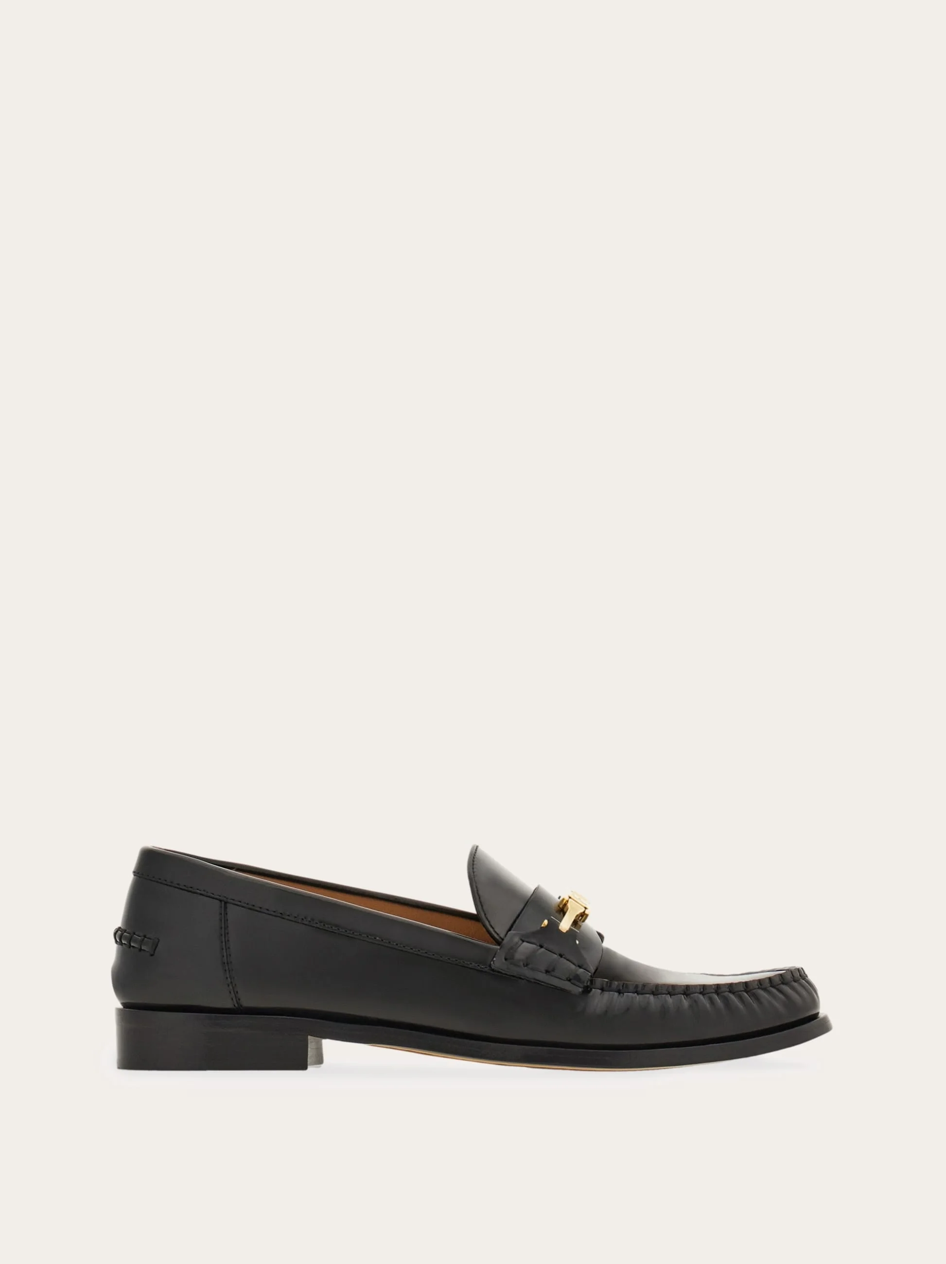Elevate off duty looks with this cool Ferragamo loafer. With its warm glow, the buffed calfskin leather echoes a high end appeal, confirmed by the golden Gancio bit across the instep. The double layered leather sole with open groove offers a glimpse at the expert craftsmanship with which it is meticulously made. Pair with your favorite denim to add an uptown twist to a laid back look. - Composition: calfskin - Made in ITALY - Product code: 01J656 781010