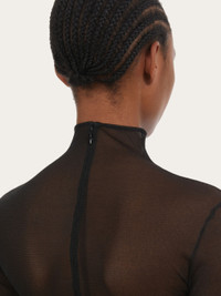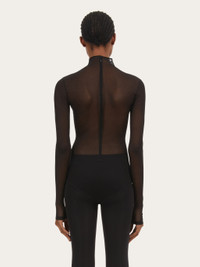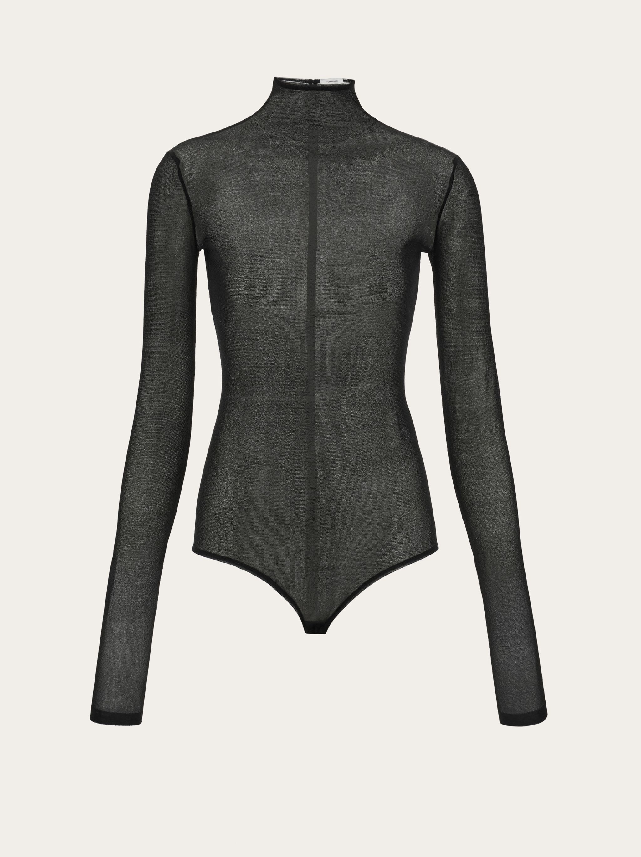 Sensual long sleeved bodysuit with a high neck and invisible zip at the back. Made of pure silk crepe, it works wonderfully under a collection blazer. - Composition: 100% silk - Product code: 112425 767706 - Made in ITALY