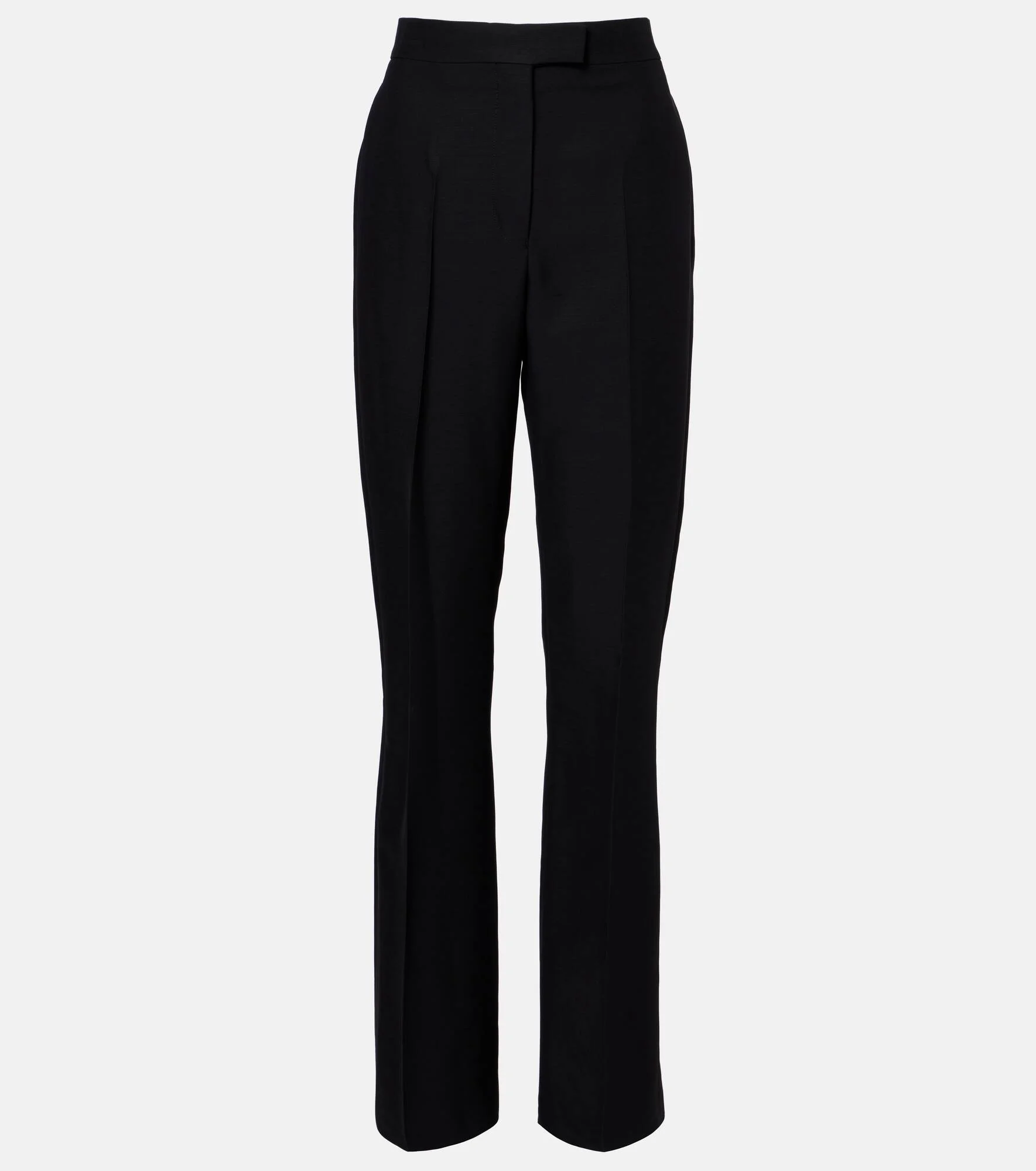 Ferragamo's elite reputation rests upon unparalleled Italian craftsmanship and a legacy of elegance. Expertly tailored and refined, these faille pants are made with a touch of wool and come in a high-rise, straight silhouette. Product Details - Material: 73% viscose, 27% wool - Care instructions: dry clean - Made in Italy - Designer color name: Nero - Item color: black - Lining: 100% cotton - Closure: zipper, hook fastening - Pockets: side slit pockets, back pocket - Hem: unfinished (ready for alteration) - Item number: P01059357 Size & Fit - True to size - Non-stretchy fabric - Straight leg - High-waisted - Unhemmed for tailoring - The model seen in the picture is 178cm-5'10" and wearing a size IT 40