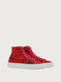The bright colors of this striking baseball shoe have it literally jumping off the page! Emblazoned with a colorful silk printed foulard, the upper is original and eye catching. The construction follows the classic sports line, with leather piping, tonal laces and a thick, white sole that features a series of raised Gancini around the edge and a personalized tread for Ferragamo style with excellent grip. Perfect to add a pop of color to any outfit. - Heel 1 cm - Composition: fabric and leather - Made In ITALY