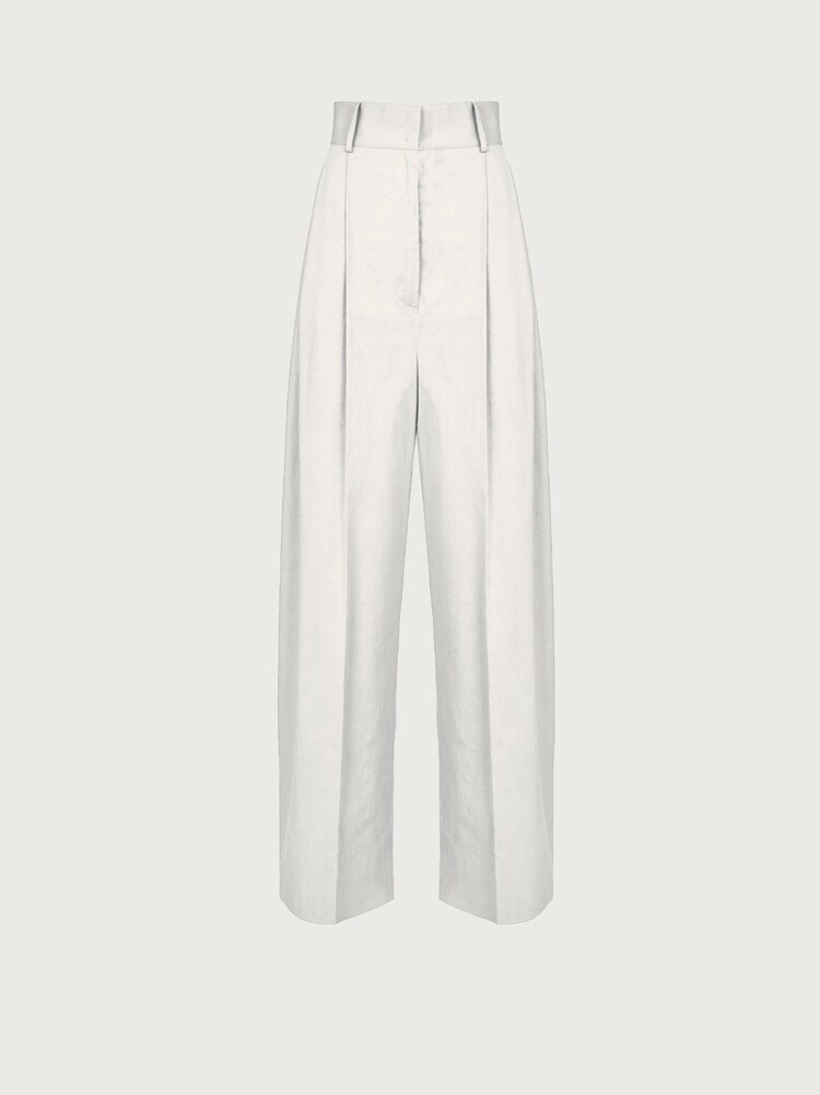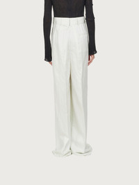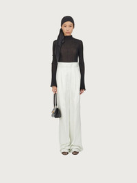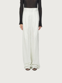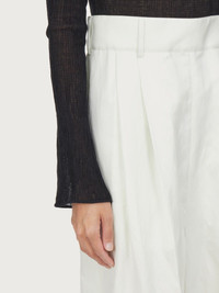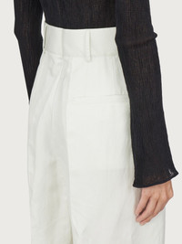 A contemporary take on the tailored trouser. Made of light, soft cotton, these high waisted pants have double pleats on the front which give way to a wide leg that softly falls down the leg. Featuring a covered zip, large belt loops and welt pockets, they are versatile and can be dressed up or down according to your mood. Try them with the open knitted top for a sensual summer look with a touch of grit. Model measurements: Height 5' 11"/180 cm; Bust 31½"/79.5 cm; Waist 23½"/60 cm, Hips 34½"/87 cm - Composition: 100% cotton - Made In ITALY