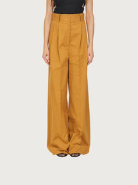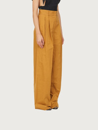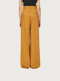 A contemporary take on the tailored trouser. Made of light, soft cotton, these high waisted pants have double pleats on the front which give way to a wide leg that softly falls down the leg. Featuring a covered zip, large belt loops and welt pockets, they are versatile and can be dressed up or down according to your mood. Try them with the open knitted top for a sensual summer look with a touch of grit. Model measurements: Height 5' 11"/180 cm; Bust 31½"/80 cm; Waist 24½"/62 cm, Hips 34½"/88 cm - Composition: 100% cotton pants - Made In ITALY