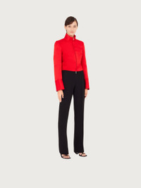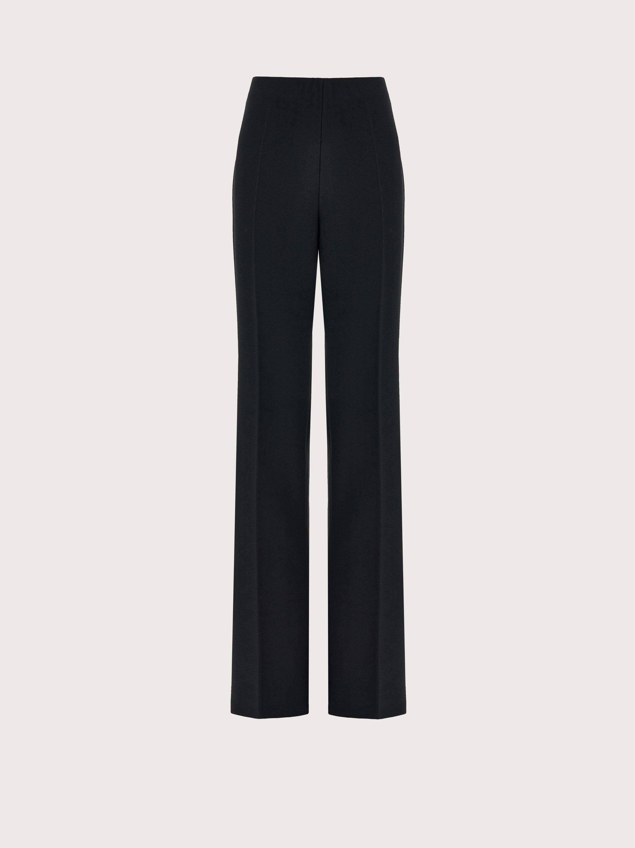 Clean lines and tailoring details define this new viscose blend crepe trouser. With a high waist and flat front, they feature a side zip and no pockets to maintain a smooth finish. The front pleat reinforces the tailored look. Model measurements: Height 5' 10"/178 cm ; Bust 32 ½ "/82 cm; Waist 23½ "/60 cm; Hips 35"/89 cm Model wearing: 38 - Composition: 70% viscose, 26% polyamide, 3% elastane - Product code: 13B376 760267 - Made in ITALY
