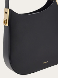 New Ferragamo Hobo bag featuring geometric shape. The adjustable handle is complemented by the Gancini buckles on the sides, while the suede-lined interior boasts a large flat pocket and two card slots. Inner bridge fastening. - height 34.0 CM / 13.3 IN length 27.0 CM / 10.6 IN width 7.0 CM / 2.7 IN - Composition: calfskin - Product code: 214444 764359 - Made in ITALY