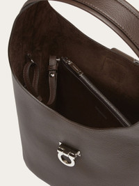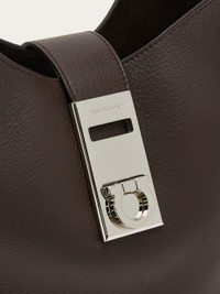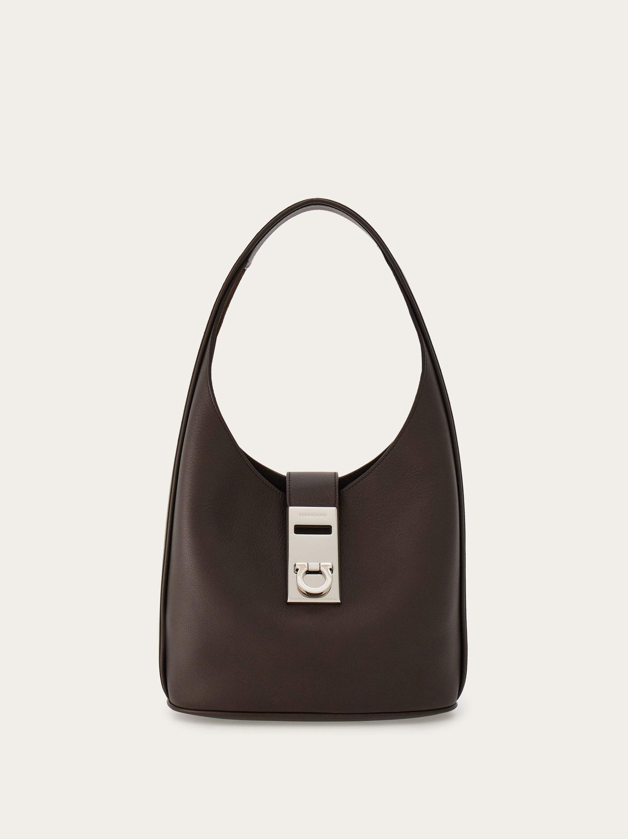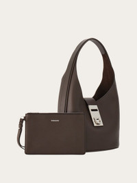 Deconstructed and cool, this new Ferragamo Hobo bag. Complemented by the detachable inner clutch and Gancini buckle, it is adorned by the stamped brand name on the front. - height 28.0 CM / 11 IN length 18.0 CM / 7 IN width 16.0 CM / 6.2 IN - Composition: calfskin - Product code: 214966 765709 - Made in ITALY