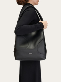 Lessons in easy chic. This sumptuous unstructured hobo bag is contemporary elegance with a laid back appeal. In a sort of peekaboo effect, the soft calfskin features two large cutouts that reveal suede inserts for a contrast of textures that is simply irresistible. With a removable pouch, lace up fastening and rigid base, this off duty top handle is guaranteed a space in your forever closet. Shoulder strap length: 28 cm - height 28.5 CM / 11.2 IN length 37.0 CM / 14.5 IN width 13.5 CM / 5.3 IN - Composition: calfskin and suede - Product code: 215985 771418 - Made in ITALY