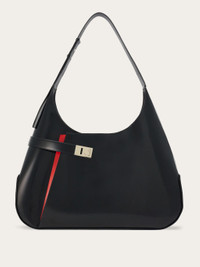 The metropolitan evolution of the hobo bag, boasting extra volume for an even more exclusive look. Crafted from brushed calfskin, it features a rounded shape on the base and an asymmetrical pocket on the front, secured by a golden-finish Gancini buckle, emphasized by the contrasting accordion detailing. Lined, it is complemented by the zipped pocket and two leather slits. It fastens with a magnetic bridge fastening and is carried over the shoulder thanks to the large shoulder strap, the length of which can be adjusted. - height 34.0 CM / 13.3 IN length 59.0 CM / 23.2 IN width 12.0 CM / 4.7 IN - Composition: brushed calfskin - Product code: 215598 766658 - Made in ITALY