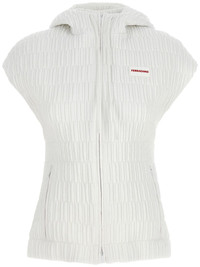 hooded gilet Highlights - White - Front two-way zip fastening - Padded design - Two side zip-fastening pockets - Logo patch at the chest Made in Italy Composition Polyamide 100% Washing instructions Read Manufacturer Guidelines