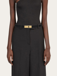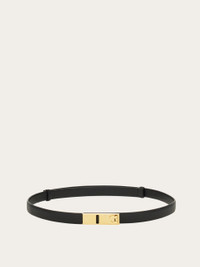 Subtle for an extra touch of femininity, this extendable belt has a shaft in soft, naturally textured calfskin. The geometric buckle with gold-plated Gancini is inspired by the Hug collection, a play on aesthetic references with a refined vibe. The back slider construction allows you to customize the fit for perfect styling every time. - height 0.7 IN - Composition: calfskin - Made in ITALY - Product code: 230332 775549