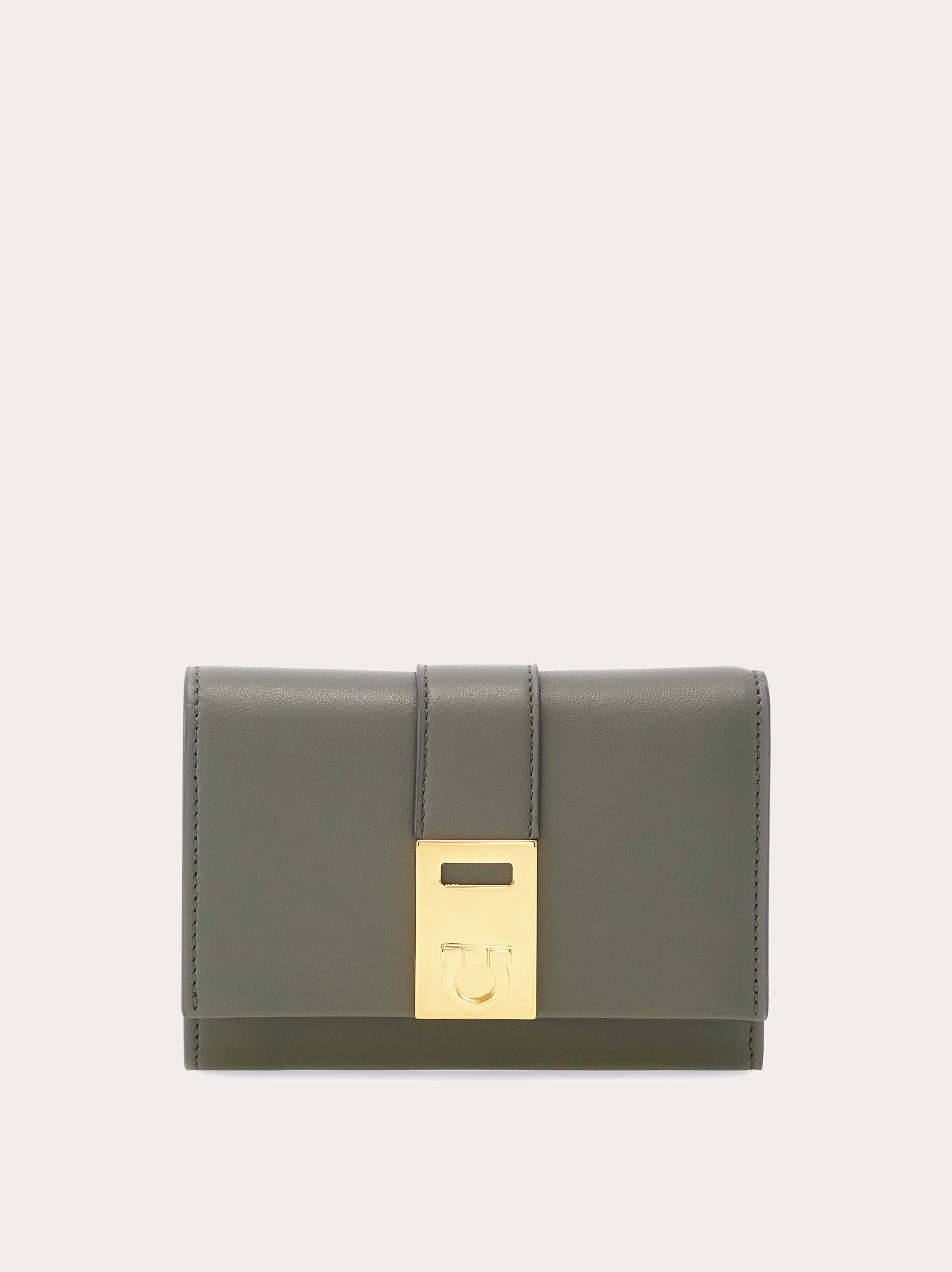Compact enough to fit into any handbag, the Hug Collection wallet reveals its refined elegance in its essential lines with Gancini closure and in the contrasting hues. Spacious enough to hold all your essentials, it features a compartment for bills, slots, and flat pockets for cards and documents, and a zip pocket along the edge for coins - height 3.7 IN length 4.7 IN width 0.7 IN - Composition: calfskin - 6 card slots, 1 compartment, 2 pockets, 1 coin zip pocket - Made in ITALY - Product code: 220630 776490