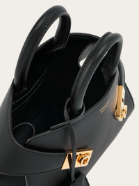 Made of the softest leather with a natural grainy texture, this compact version of the Hug bag is uptown style at its best. The rounded edges bring a softness to the rigid structure, echoed by the two straps that emanate from the back quadrant and wrap the billows, fastening at the front via two golden Gancio buckles. The look is ladylike contemporary, with a keychain charm on the zip ring, and detachable shoulder strap for handsfree styling. - A) Height 5.5 IN B) Length 8.8 IN C) Width 4.3 IN - Composition: calfskin - Handle drop: 2.9 in/7,5 cm - Extra Small - Made in ITALY - Product code: 215975 768853
