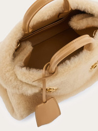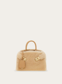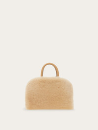 New glamour-a-porter: a mini version of the iconic Hug bag in soft merino, combined with smooth calfskin details for a refined texture. The enveloping design and golden Gancini buckles make it instantly recognizable, while signature rectangular studs the base. The bag is finished with an internal ring closure, a keychain charm, and a removable strap that offers several styling options. - A) Height 5.5 IN B) Length 8.8 IN C) Width 4.3 IN - Composition: merino wool and calfskin - Handle drop: 2.9 in/7,5 cm - Extra Small - Made in ITALY - Product code: 219923 779674