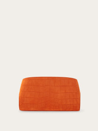 Alligator embossed suede turns the understated mini Hug into a statement pochette. The texture and colors of this new contemporary icon confirm a bold personality, while the silhouette remains faithful to the much-loved original. Wide straps wrap the sides and fasten at the front via golden Hug buckles, and the shoulder strap is both adjustable and removable. - A) Height 5.5 IN B) Length 9.4 IN C) Width 2.1 IN - Composition: printed and suede kid leather - Mini - Made in ITALY - Product code: 218964 792847