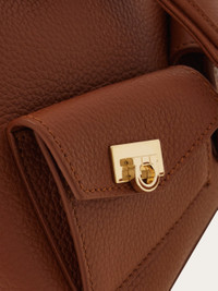 Compact and effortlessly versatile, the new mini backpack is a cool essential you’ll want to wear on repeat. A sleek geometric flap conceals a drawstring opening, complete with an interior lining and snap closure. Front pockets with sharp lines are finished with gold-tone Hug buckles for a signature touch. - height 9.4 IN length 7.8 IN width 4.3 IN - Composition: hammered calfskin - Mini - Made in ITALY - Product code: 220941 785887