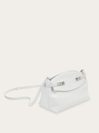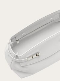 Soft and enveloping with metropolitan lines: the new Ferragamo pouch is the evolution of the crossbody bag from the new Hug line, crafted from soft natural-grain calfskin. The deconstructed construction with side straps creates delicate gathering, for a “hug” effect. The Gancini buckles fasten on the front flap, covering the functional zipped pocket. The spacious lined interior is perfect for holding your personal items. Carry it as a handbag or crossbody bag with the adjustable leather strap. - Composition: calfskin - Made In ITALY