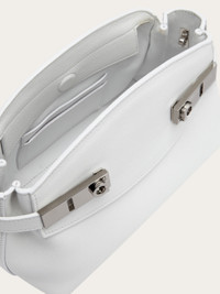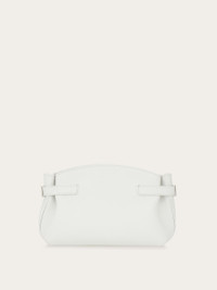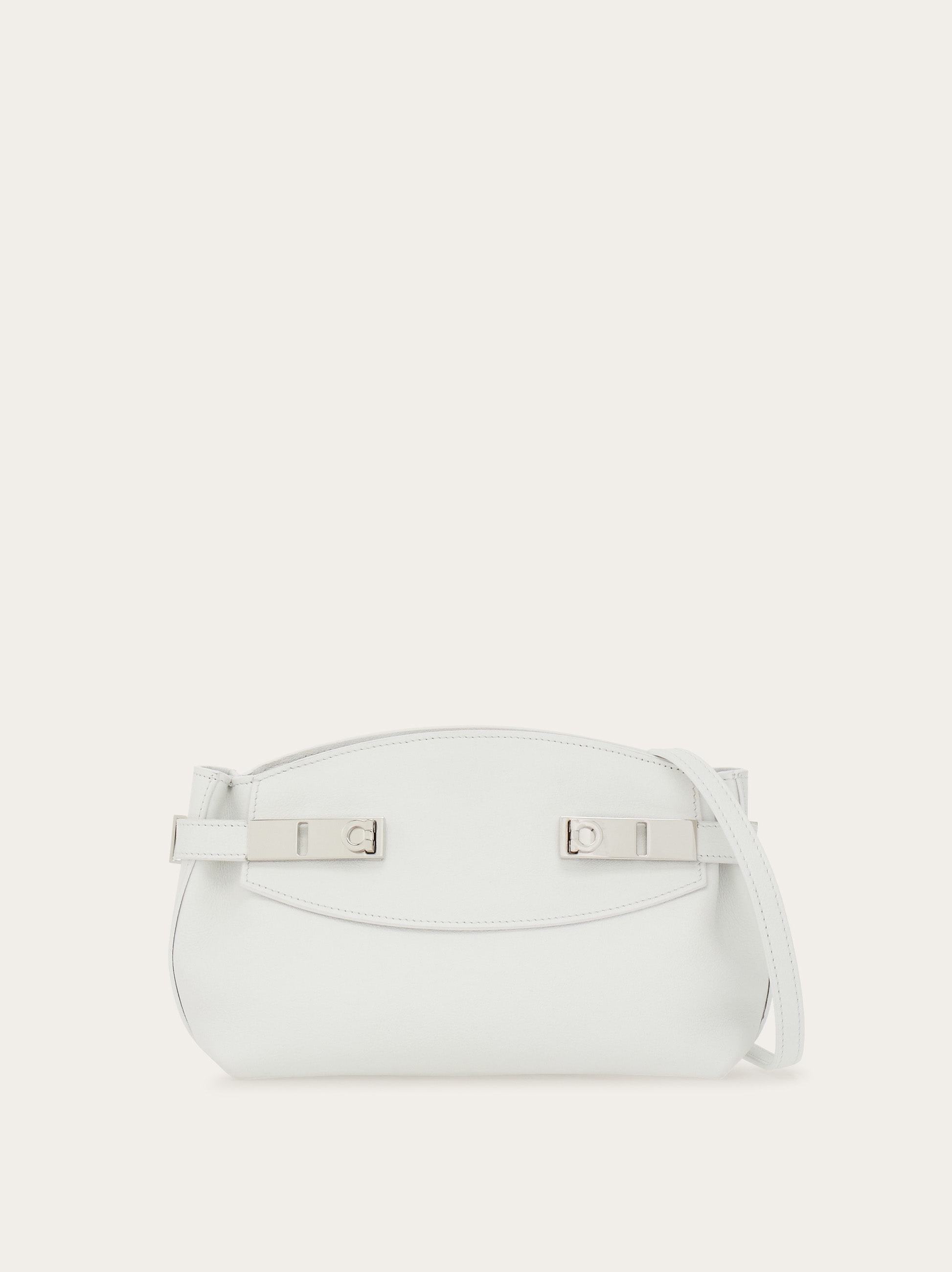Soft, and oh so chic, the compact version of the Hug Pouch will elevate any outfit. The deconstructed shape features side straps that cinch the gussets and clip at the front with two golden Gancio buckles. Practical details include two internal slots for cards and documents and a magnetic clasp. Can be carried as a clutch or worn over the shoulder via the removable strap. - height 5.9 IN length 9.4 IN width 4.7 IN - Composition: calfskin - Made in ITALY - Product code: 215974 768845