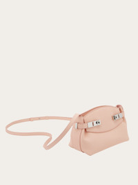 Soft, and oh so chic, the compact version of the Hug Pouch will elevate any outfit. The deconstructed shape features side straps that cinch the gussets and clip at the front with two golden Gancio buckles. Practical details include two internal slots for cards and documents and a magnetic clasp. Can be carried as a clutch or worn over the shoulder via the removable strap. - height 5.9 IN length 9.4 IN width 4.7 IN - Composition: calfskin - Made in ITALY - Product code: 215974 768844