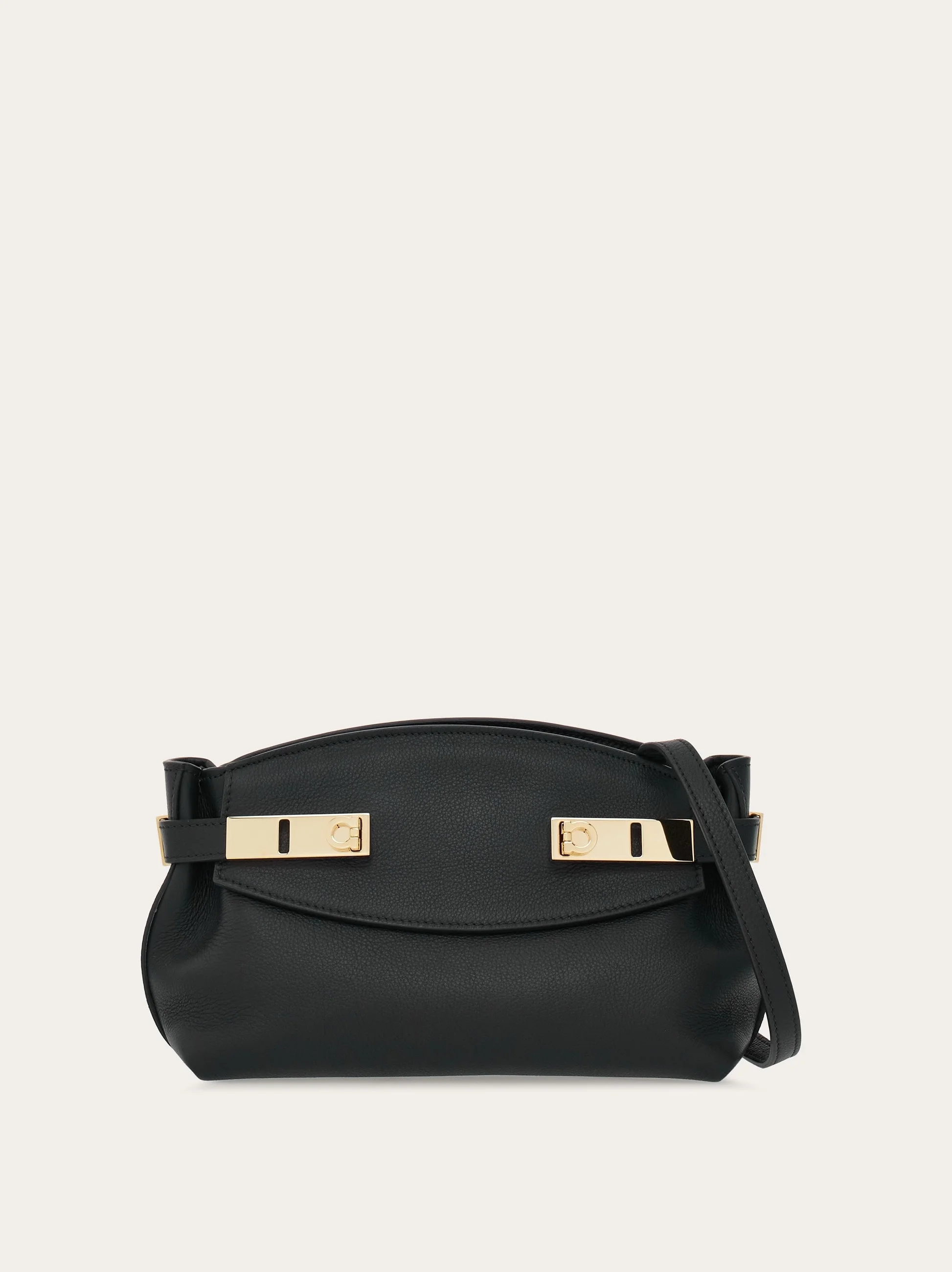 Soft, and oh so chic, the compact version of the Hug bag will elevate any outfit. The deconstructed shape features side straps that cinch the gussets and clip at the front with two golden Gancio buckles.Practical details include two internal slots for cards and documents and a magnetic clasp. Can be carried as a clutch or worn over the shoulder via the removable strap. - A) Height 5.9 IN B) Length 9.4 IN C) Width 4.7 IN - Composition: calfskin - Extra Small - Made in ITALY - Product code: 215974 768846