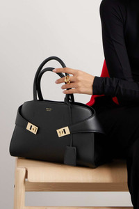 EDITORS'NOTES It's easy to see why Ferragamo's bag is named 'Hug'. Made from supple leather, this small-sized style has gold-tone 'Gancini' buckles and studs at the base to protect it from getting easily scratched. SIZE & FIT This item’s measurements are: - Handle Drop: 14cm / 5.5in - Depth: 14cm / 5.5in - Height: 21.5cm / 8.5in - Width: 32cm / 12.6in DETAILS & CARE - Black and red leather (Calf) - Open top