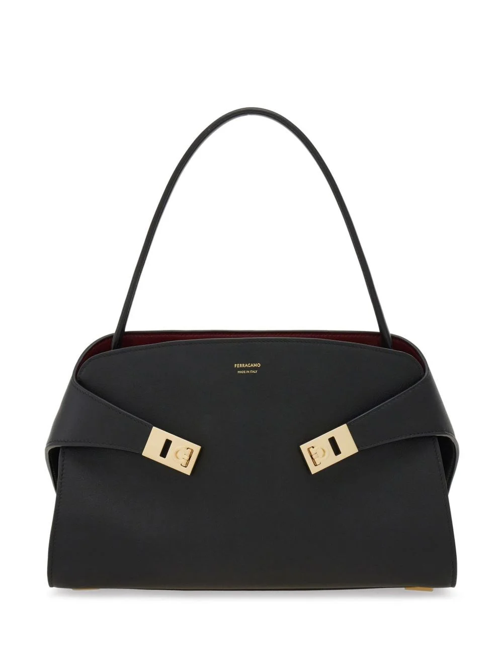 Hug small leather tote [ SKU: 10194379195 ] The Hug small leather tote by Ferragamo embodies luxury and sophistication in the realm of high-end fashion accessories. This exquisite tote bag seamlessly blends style with functionality, making it an ideal companion for both day and evening occasions. Its refined design features unique details that elevate any ensemble, whether paired with tailored office attire or a chic evening dress. Perfect for business meetings or upscale events, this tote effortlessly complements your lifestyle. Crafted with sustainability in mind, the Hug tote exemplifies Ferragamo's commitment to quality and responsible luxury. Reference 219816781694007 Made in ITALY