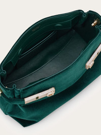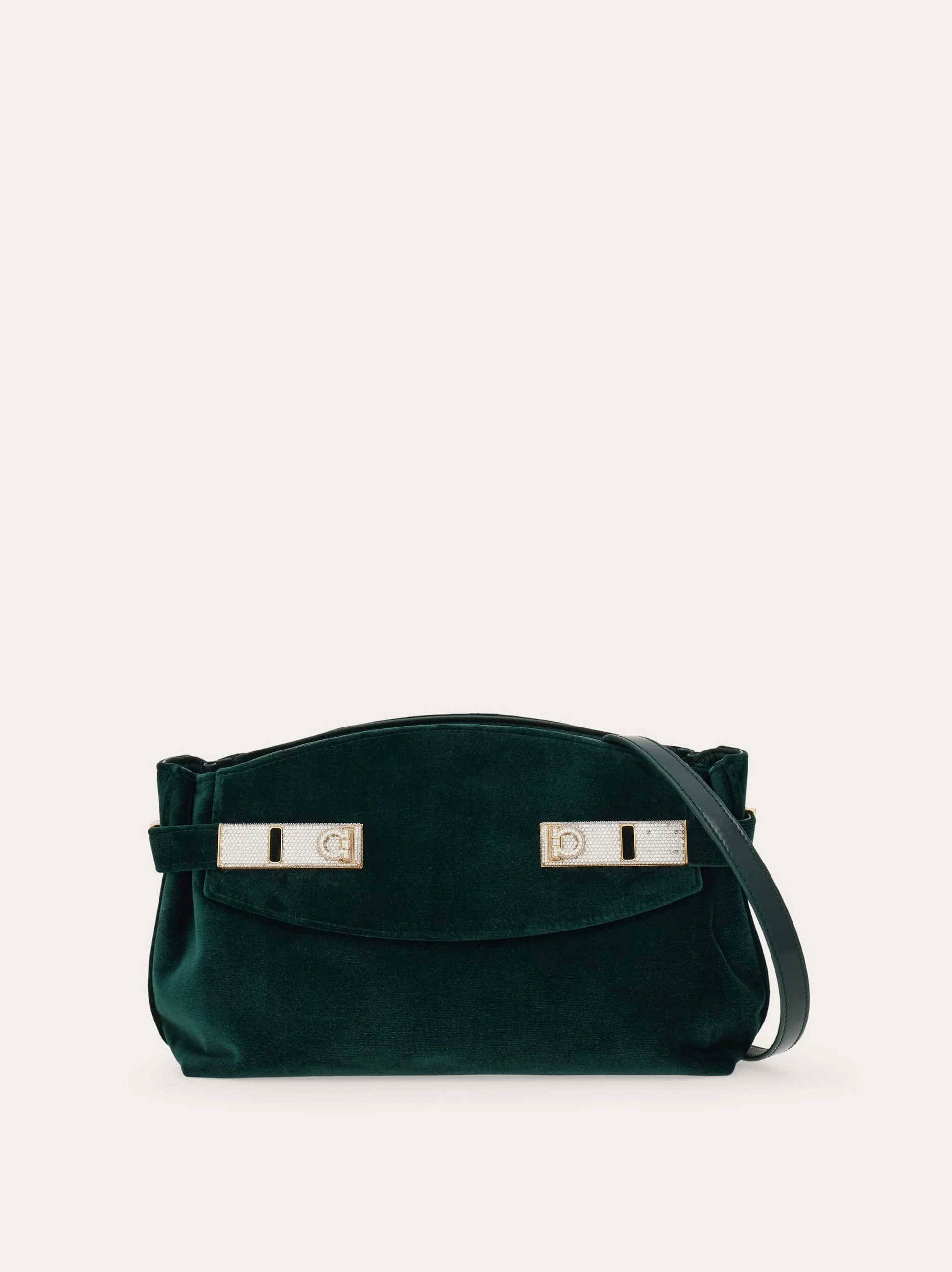 A tactile iteration of the mini Hug bag, made of the softest velvet. The wide straps that wrap the sides are fastened at the front via crystal-embellished Gancio clasps. This super glam clutch unzips to reveal a leather-lined interior with dual card slots. The removable leather strap offers a hands free styling option. - A) Height 5.9 IN B) Length 9.4 IN C) Width 4.7 IN - Composition: fabric and calfskin - Extra Small - Made in ITALY - Product code: 219832 786112