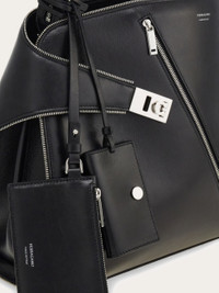 The clean lines of the iconic Hug bag are interrupted by a series of zips, giving this chic new iteration a decidedly rock feel. Cut from the finest calfskin leather, this roomy shoulder bag, with serious metallic hardware, opens to reveal a fully organized, lined interior. A removable pouch completes the design. - A) Height 12.0 IN B) Length 15.7 IN C) Width 5.9 IN - Composition: calfskin - Large - Made in ITALY - Product code: 21A406 787847