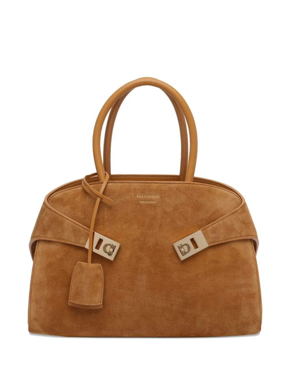 Hug tote bag Highlights - Light brown - Frog closure - Removable shoulder strap Made in Italy Composition Outer: Calf Suede 100% SIZE & FIT Measurement DEPTH 6.69 in(17 cm) HEIGHT 9.05 in(23 cm) WIDTH 12.59 in(32 cm)