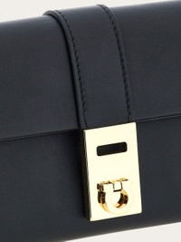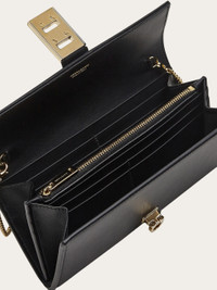 The contemporary elegance of the Hug collection is attested to in this new wallet too, boasting a wide, spacious design with a plain calfskin structure and the iconic golden-finish Gancini fastening. The double-compartment interior with several card slots is complemented by a zipped coin pocket in the center and a detachable metal chain strap so you can also carry it as a mini bag. Versatility and style, in a single accessory. - height 3.7 IN length 7.6 IN width 0.9 IN - Composition: calfskin - 10 card slots, 3 pockets, 2 compartments, 1 coin zip pocket - Made in ITALY - Product code: 220668 775132