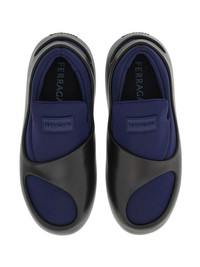 Hybrid logo-patch slip-on sneakers Highlights - Midnight blue/black - Panelled design - Logo patch to the front - Debossed logo to the rear - Slip-on style - Round toe - Branded insole - Flat rubber sole Made in Italy Composition Outer: Rubber 60%, Fabric 40%