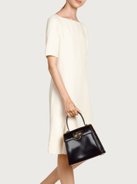 Medium top handle bag in brushed-off calfskin with a gold Gancini clasp. Iconic Top Handle bag is a re-release of one of the Ferragamo brand’s best known styles and it embodies the many facets of the female essence. Its extremely versatile size makes it the perfect companion for any occasion. - height 33.0 CM / 12.9 IN length 24.0 CM / 9.4 IN width 13.0 CM / 5.1 IN - Composition: brushed-off calfskin - Product code: 212268 749179 - Made in ITALY
