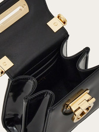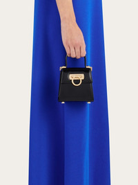 A micro size and a jewelry box aesthetic for the new version of our Iconic top-handle bag. The geometric brushed panels are complemented by the golden Gancini fastening and the rigid handle with detachable shoulder strap for two ways of carrying. - Composition: calfskin - Made In ITALY