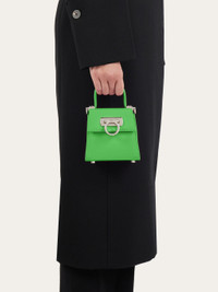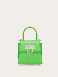 A micro size and a jewelry box aesthetic for the new version of our Iconic top-handle bag. The geometric brushed panels are complemented by the golden Gancini fastening and the rigid handle with detachable shoulder strap for two ways of carrying. - height 12.0 CM / 4.7 IN length 12.0 CM / 4.7 IN width 7.0 CM / 2.7 IN - Composition: calfskin - Product code: 213972 763067 - Made in ITALY