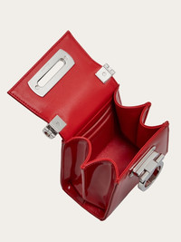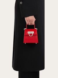 A micro size and a jewelry box aesthetic for the new version of our Iconic top-handle bag. The geometric brushed panels are complemented by the golden Gancini fastening and the rigid handle with detachable shoulder strap for two ways of carrying. - Composition: calfskin - Made In ITALY