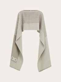 A sophisticated evolution of the classic wool cape, this style features a clean-cut design with long, draped sides. Made from pure wool, it showcases a jacquard patchwork effect, where contrasting textures and patterns meet in striking harmony. Finished with delicate fringe at the hem and refined leather accents. - length 80.7 IN width 27.5 IN - Composition: 100% pure wool - Size 50 - Made in ITALY - Product code: 321234 790363
