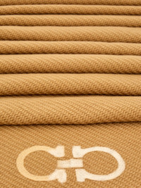 Warm and cocooning, this pure wool scarf comes in rich, solid hues for a modern, understated elegance. A woven-effect stitch creates a subtle contrast between front and back, adding texture and depth. It’s finished with a bold, degrade Gancini motif, crafted in a refined needle-punch technique. - length 70.8 IN width 13.7 IN - Composition: 100% pure wool - Made in ITALY - Product code: 321213 790357