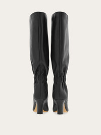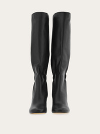 With its sophisticated, slouchy look, this knee boot promises to take your wardrobe in a stylish new direction. The square-toe profile is adorned with an oversized version of the Gancini motif in gleaming gold and set on a comfortable leather-covered block heel measuring 7 cm. - Composition: calfskin - Made in ITALY - Product code: 01K643 786902