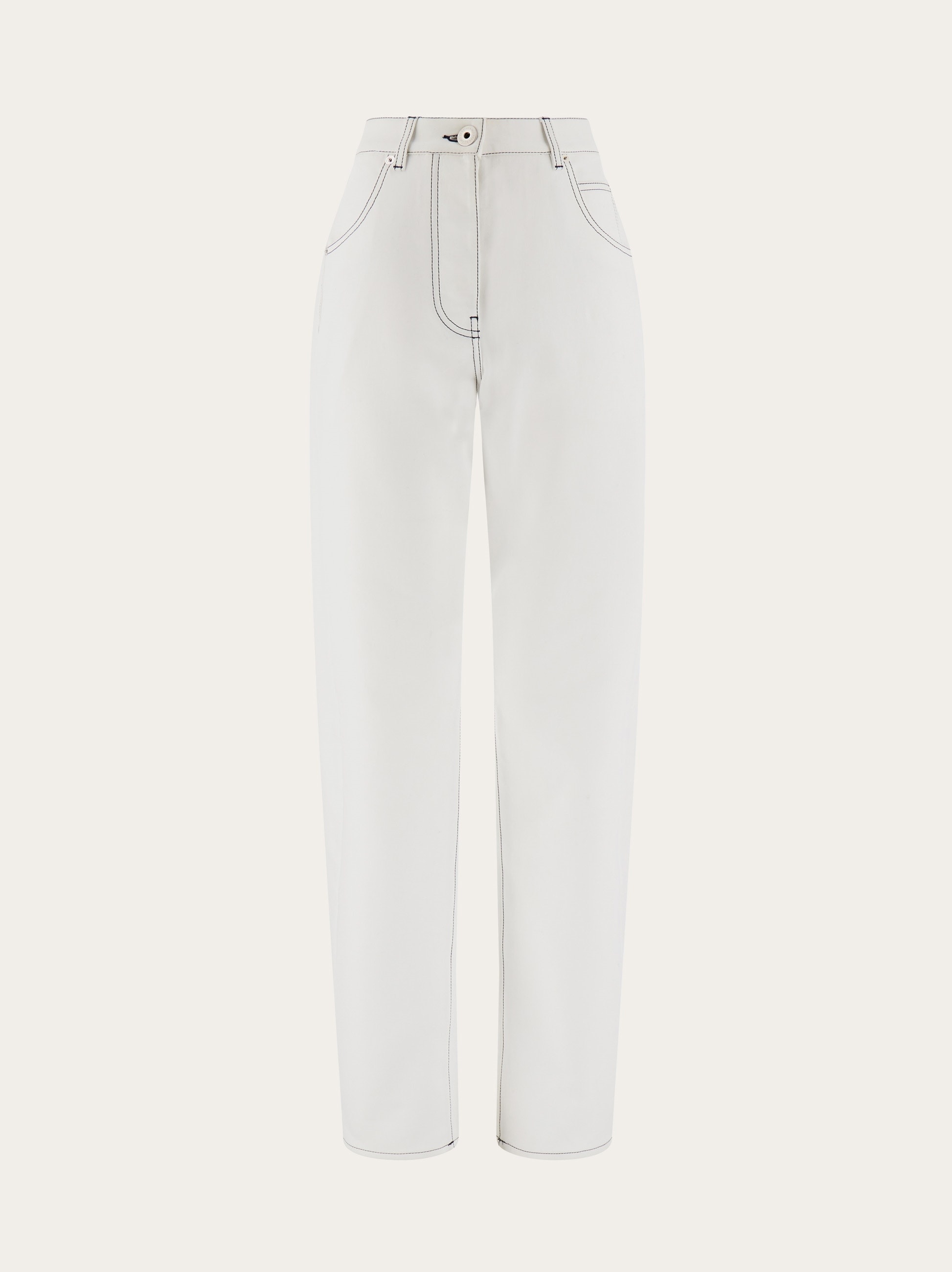 Original stitching details and a contemporary cut give these heavy denim jeans a high end look. Inspired by the classic five pocket trouser, they feature all the textbook elements: zip fastening with metal tab button, rivets on the front pockets, and visible double stitching in all the right places. Beyond fashion, beyond seasons. - Composition: 100% cotton - Made in ITALY - Product code: 13F949 775974