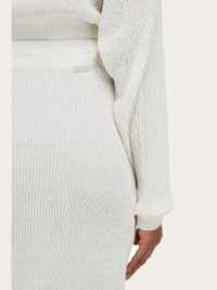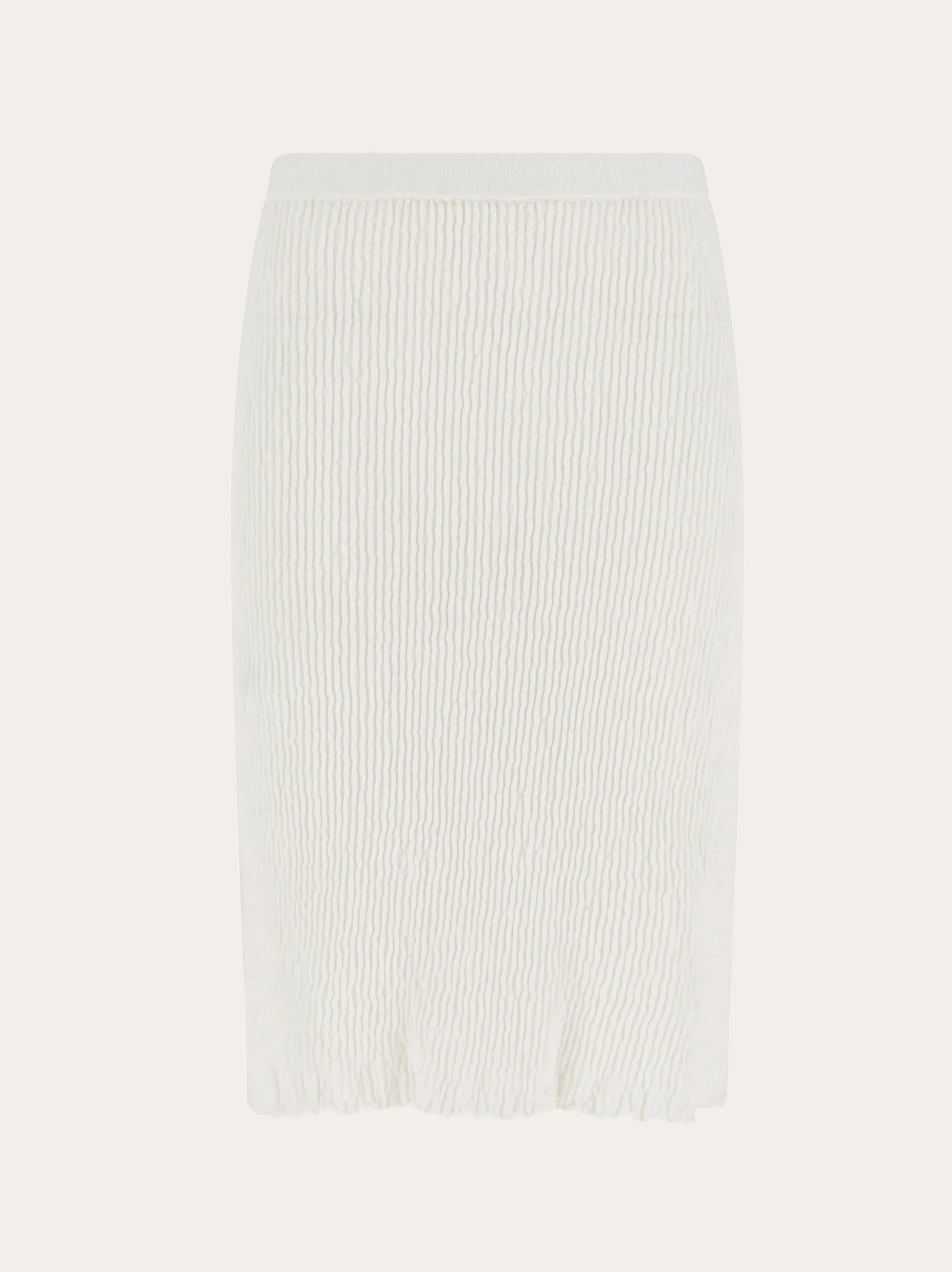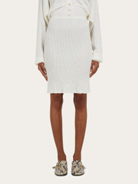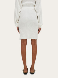 Soft and enveloping, this knitted skirt is made from claque linen. The unique features of the fabric are enhanced by a ribbed construction with raw hem for a current edge, while the elasticated waist and soft inner lining complete the design. Pair with a seasonal polo for the perfect off duty look. - Composition: 95% linen, 5% polyamide - Model measurements: Height 5' 9"/175 cm; Bust 30"/76 cm; Waist 24"/61 cm; Hips 34½"/87 cm - Model wearing: 38/XS - Made in ITALY - Product code: 13H266 783889