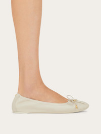 Like a glove. This season's new take on the ballet flat is designed with both comfort and style in mind. Cut from sumptuous nappa leather, this iteration has a padded insole enhanced with a 1cm wedge, while the gathered upper holds the foot securely for a glove-like fit. Across the toe, a mini bow with custom aglets is secured via a Gancio buckle, and the slightly squared tip offers ease of movement with a contemporary appeal. Easy to fold and carry as a second pair in the custom dust bag. - Composition: nappa - Made in ITALY - Product code: 01J215 779657