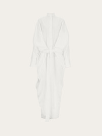 Masterfully cut jumpsuit with batwing sleeves and a tied waist. A minimal take on utility style, the line is clean, with tonal buttons, a mandarin collar, and shirt cuffs. Deep slit pockets complete this effortless yet impactful design. - Composition: 74% viscose, 26% polyamide - Model measurements: Height 5' 10½ "/179 cm ; Bust 31½ "/80 cm; Waist 23½ "/60 cm; Hips 34½ "/88 cm - Model wearing: 38 - Made in ITALY - Product code: 13G704 782909