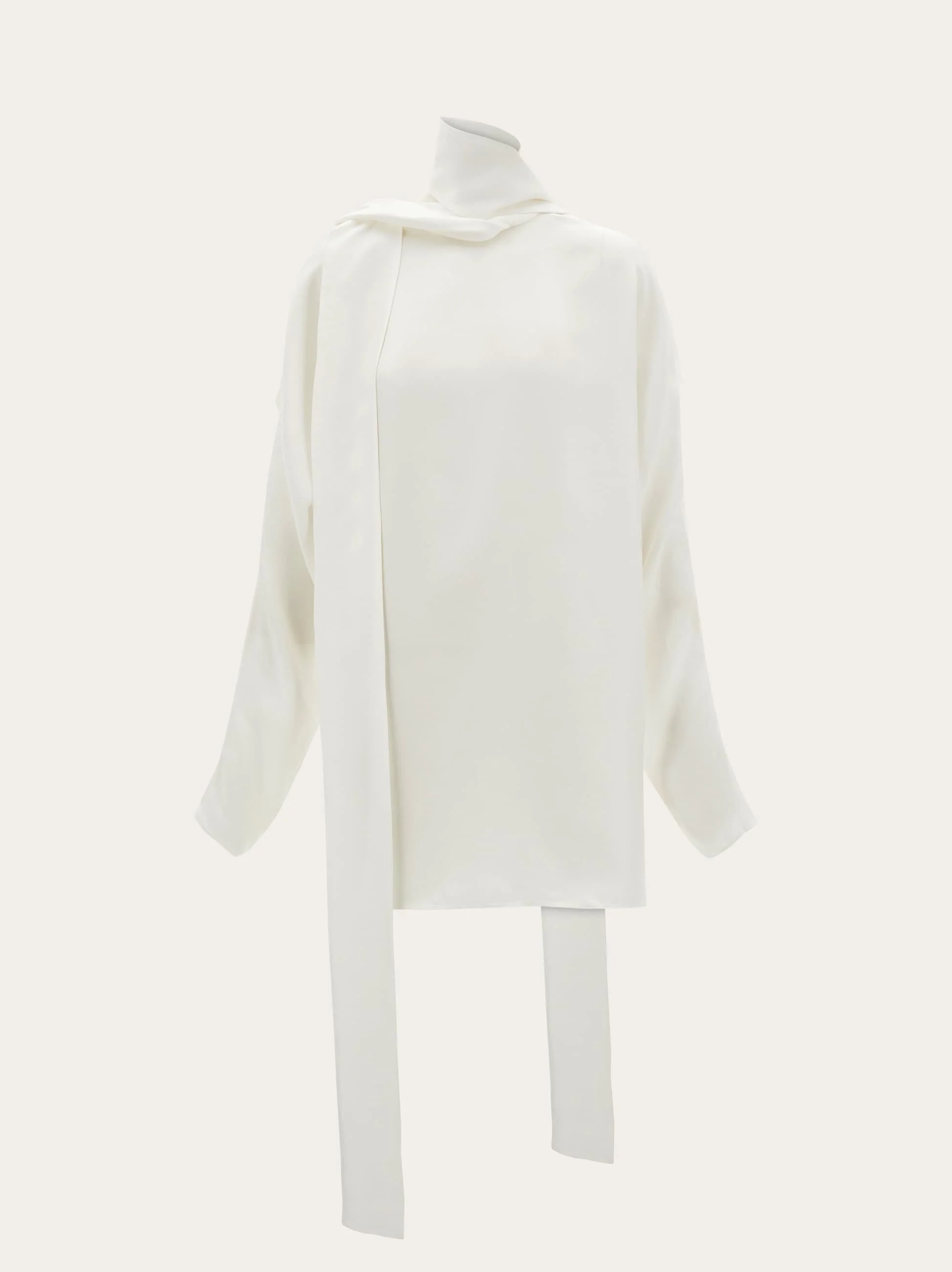 Inspired by choreographer Pina Bausch, whose vision for dance was boundless movement, Maximilian Davis creates couture with a unique personality. The high shine finish of the viscose twill enhances the fluid feel of this dress, with wide kimono-cut sleeves and a dramatic scarf neckline. The back is left bare, adorned by draped, twisted sashes that add a sensual twist as the wearer sashays unhindered. - Composition: 100% viscose - Made in ITALY - Product code: 13H660 788272